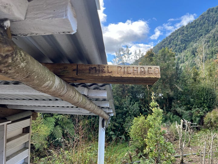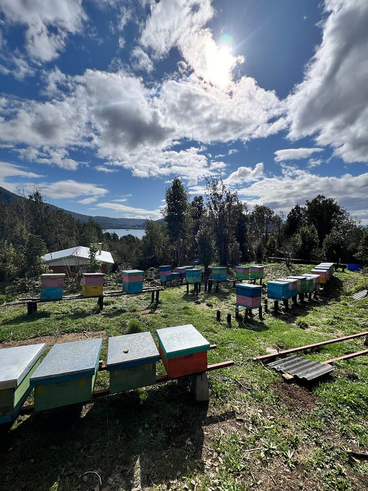 In Hornopiren, a small town at the foothills of the Andes that you can only get to by ferry, we met a beekeeper named Adriana De Lourdes Marcos Sobarzo. Adriana runs a small honey shop in Hornopiren, selling Miel Pisco under the table if she likes you enough. She gave us a tour of her bees and goats, who had just given birth to lambs. Adriana quit her retail job in Puerto Montt because she realized she wasn’t happy and started a farm instead. Amid a language barrier*, she gifted us large Nalca stalks and sent us on our way. We liked the Nalca (or Gunnera Tinctoria) at first but were mostly bewildered by what to do with the rest of it, since we started with 4 feet and managed to get through 2. I don’t have a picture of Adriana**, but I did take photos of the bee homes and the shack where she brews her moonshine.
